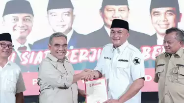 Sekjen Partai Gerindra Ahmad Muzani mendeklarasikan Rudy Susmanto sebagai Calon Bupati Kabupaten Bogor di Pilkada mendatang.