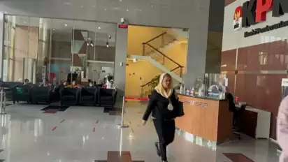 Mbak Ita telah berada di ruang tunggu lobi gedung KPK pada pukul 08.30 WIB dengan mengenakan kerudung berwarna krem dan pakaian berwarna hitam.