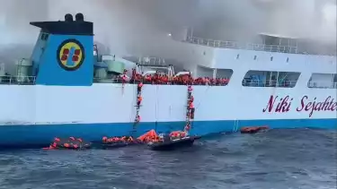 Bakamla RI Evakuasi Puluhan Penumpang dan Kru Kapal KM Niki Sejahtera yang Terbakar di Perairan Banjarmasin
