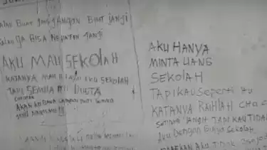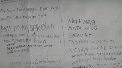 Adapun tulisan di tembok yang diduga ditulis oleh sang anak, yakni: