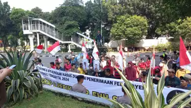 Jakarta, tvOnenews.com - Kelompok mahasiswa yang tergabung dalam Koalisi Mahasiswa Pemerhati Anggaran Negara (KOMA PENA) menggelar aksi demo di Kantor Kejaksaan Agung (Kejagung), Selasa(6/8/2024).