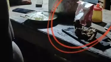 Di video itu, tampak ada meja yang di atasnya terdapat daging kucing, sepiring berisi nasi, botol kecap dan magic com.