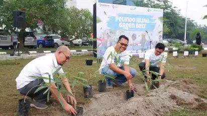 Penanaman pohon secara serentak ini merupakan bagian dari upaya Pelindo mengurangi emisi karbon dan melindungi wilayah sekitar pelabuhan dengan konsep green belt.