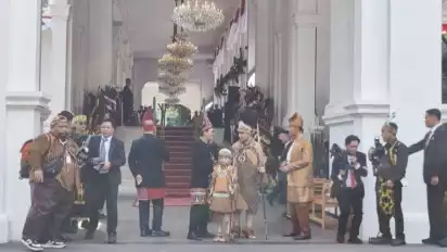 Jakarta, tvOnenews.com - Wakil Presiden RI Terpilih Gibran Rakabuming Raka tiba di Istana Merdeka pada Sabtu (17/8/2024) dengan busana adat khas Papua untuk menyaksikan Peringatan Detik-Detik Proklamasi dalam rangka HUT ke-79 RI.