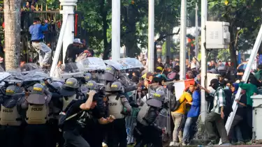 Jakarta, tvOnenews.com - Aksi unjuk rasa mendukung putusan Mahkamah Konstitusi (MK) di Gedung DPR RI mulai ricuh antar kelompok pendemo dengan aparat kepolisian pada Kamis (22/8/2024).