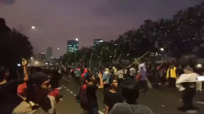 Di tengah sejumlah massa aliansi mahasiswa dan masyarakat berangsur bubarkan diri, secara tiba-tiba sekelompok orang mengenakan seragam sekolah datang berlari di Jalan Gatot Subroto.