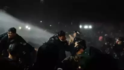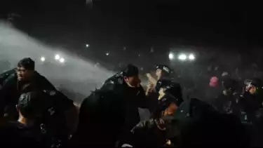 Dengan situasi semakin memanas ini pihak kepolisian pun tidak kuat menahan lemparan gas air mata dan semprotan air dari kendaraan taktis Water Cannon.