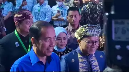 Pantauan tvOnenews.com, Jokowi memasuki aula pada pukul 18.57 WIB. Jokowi hadir bersama putra sulungnya Gibran Rakabuming Raka dan menantunya Bobby Nasution.