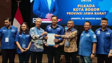 Jakarta, tvOnenews.com - Pasangan Calon Walikota dan Wakil Walikota Bogor, Dedie Abdu Rachim dan Jenal Mutaqin resmi mendapat dukungan dari Partai Demokrat untuk berkontestasi di Pilkada serentak 2024.