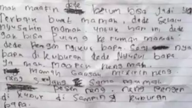 "Saya (NP). Saya tinggal di dekat pom bensin Al-Barkah Urip Sumoharjo. Tolong siapa pun yang temui surat ini, tolong sampaikan kepada ibu saya (Mulyanah).