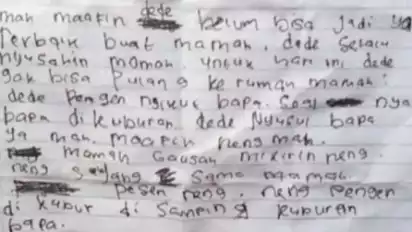 Ma, maafin dede belum bisa jadi yang terbaik buat mama. Dede selalu nyusahin mama. Untuk hari ini dede enggak bisa pulang ke rumah mama. Dede ingin ikut bapak.