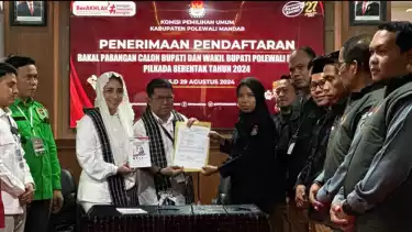 Polewali Mandar, tvOnenews.com - Pasangan Bebas Manggazali – Siti Rahmawati resmi mendaftar di KPUD Polewali Mandar, Kamis (29/8/2024).