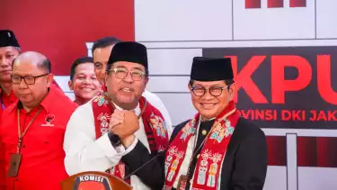 Rano berpasangan dengan politsi PDIP sekaligus Menteri Sekretaris Kabinet Pramono Anung.