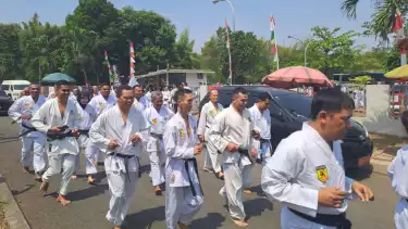 Jakarta, tvOnenews.com - Ratusan siswa karate dari Kushin Ryu M Karate-Do Indonesia (KKI) melaksanakan long march atau berlari kecil di area Grand Wisata, Tambun, Kabupaten Bekasi, Sabtu (31/8) pagi.