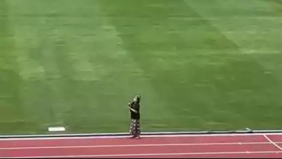 Dalam video itu terlihat Rara, berjalan di pinggir stadion sambil memegang diduga sesajen (dupa), sambil menadahkan kepala ke langit.