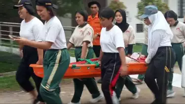 "Yang kita lakukan saat ini, kita simulasikan seolah-olah semua siswa berada di gedung bertingkat, jika nanti serene berbunyi berarti tandanya bunyi emergency yang nantinya semua siswa berlari ke lokasi yang sudah ditentukan dan sudah disiapkan regu penolong," katanya.