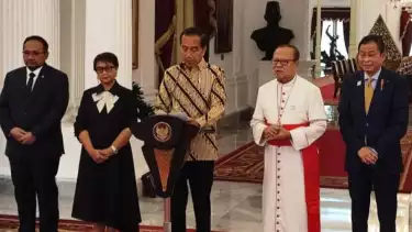 Jokowi mengatakan, ia baru saja melaksanakan rapat terakhir bersama Menteri Luar Negeri Retno Marsudi, Menteri Agama Yaqut Cholil Qoumas dan Uskup Agung Jakarta Ignatius Suharyo Hardjoatmodjo di Istana Merdeka.