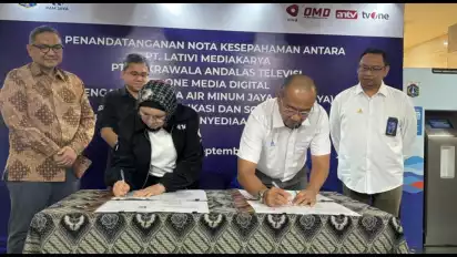 Jakarta, tvOnenews.com - Perusahaan Umum Daerah (Perumda) PAM Jaya melakukan penandatanganan kerja sama dengan Viva Grup di Kantor PAM Jaya Pemda DKI, Bendungan Hilir, Tanah Abang Jakarta Pusat, Rabu (4/9/2024).