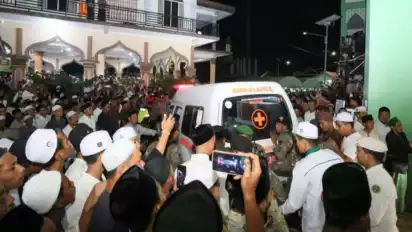 Jakarta, tvOnenews.com - Ribuan santri dan masyarakat dari berbagai daerah menyambut kedatangan jenazah Bacawagub Aceh Tgk Muhammad Yusuf A Wahab atau akrab disapa Tu Sop saat tiba di kediamannya di Dayah Babussalam Al Aziziyah Jeunib, Kabupaten Bireuen, Minggu (8/9/2024) dini hari.