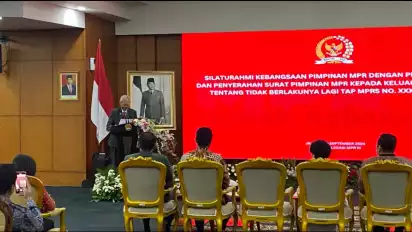 "Tentang pencabutan kekuasaan negara dari Presiden Soekarno atau tentang pendongkelan Presiden Soekarno yang dilakukan secara tidak sah," kata Guntur di Gedung MPR, Jakarta Pusat, Senin (9/9/2024).
