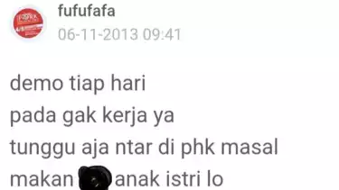 "Demo tiap hari pada enggak kerja ya? Tunggu aja entar di PHK massal makan --- anak istri lo".