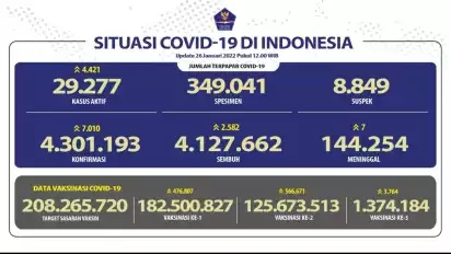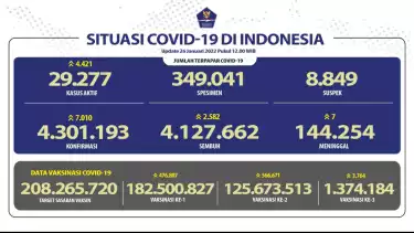 Menurut data pemerintah, kasus kematian akibat Covid-19 juga masih terjadi meskipun angkanya sudah menurun signifikan. Jumlah pasien yang meninggal dunia karena infeksi virus corona tipe SARS-CoV-2 seluruhnya 144.254 orang, bertambah tujuh orang pada Rabu. Jumlah penderita Covid-19 yang masih menjalani perawatan dan karantina pada Rabu tercatat 29.277 orang, bertambah 4.421 orang dibandingkan pada hari sebelumnya.