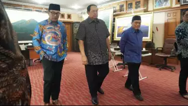 Jakarta, tvOnenews.com - Bakal pasangan calon gubernur dan wakil gubernur Jakarta Ridwan Kamil dan Suswono (RIDO) bersilaturahmi ke kediaman Susilo Bambang Yudhoyono (SBY) di Cikeas, Bogor, Jawa Barat, Kamis (19/9/2024).