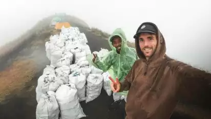 Seniman tersebut dilaporkan telah mengambil sampah seberat 1,6 ton yang tercecer di gunung berketinggian 3,726 meter dari permukaan laut itu.