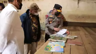Kapolda Sumatera Utara Irjen Pol Panca Putra mengecek buku catatan yang ditemukan di dalam kerangkeng