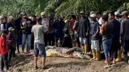 Buaya Raksasa 5 Meter Telan Pria di Rokan Hilir, Warga Belah Perut Sang Reptil Demi Temukan Potongan Tubuh Korban