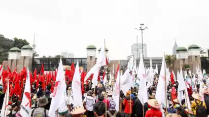 Jakarta, tvOnenews.com - Sejumlah elemen buruh tani menggelar aksi unjuk rasa dalam rangka memperingati Hari Tani Nasional (HTN) di Gedung DPR/MPR RI, pada Selasa (24/9/2024).