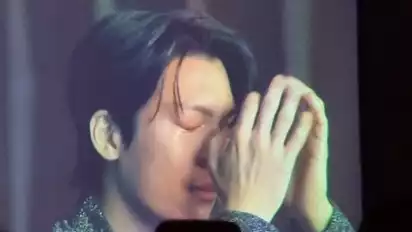Aktor berusia 33 tahun itu terlihat terharu dan tak kuasa menahan tangisnya.