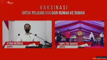 Jakarta - Presiden Joko Widodo (Jokowi) menyaksikan secara online dimulainya vaksinasi Covid-19 secara serentak bagi pelajar SMP dan SMA di 32 lokasi yang tersebar di 15 kabupaten/kota dan 14 provinsi dan merupakan episentrum Covid-19 di Tanah Air.