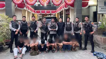 Kemudian tim langsung melakukan pengejaran terhadap para pemuda tersebut. Dan delapan remaja beserta barang bukti berhasil diamankan oleh petugas.