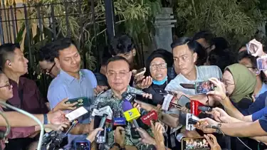Sebelumnya, Pramono tiba memakai batik berwarna gelap dan berjalan cepat menuju sebelah Rumah Prabowo.