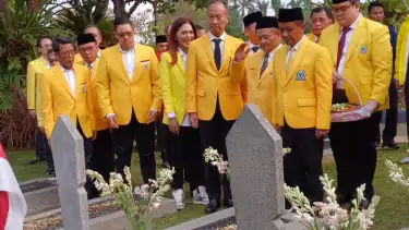 Jakarta, tvOnenews.com - Partai Golkar melakukan ziarah ke Taman Makam Pahlawan (TMP) Kalibata, Jakarta Selatan dalam rangka Hari Ulang Tahun (HUT) ke-60 Golkar, Sabtu (19/10).