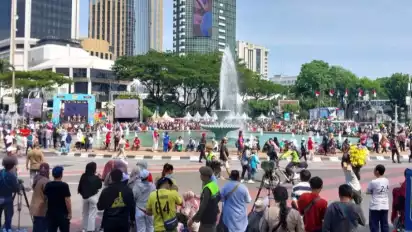 Jakarta, tvonenews.com - Antusiame warga jelang momentum pelantikan Presiden dan Wakil Presiden Terpilih RI Prabowo Subianto dan Gibran Rakabuming Raka untuk periode 2024-2029 terlihat jelas di Kawasan Area Simpang Patung Kuda di sekitar kawasan Monumen Nasional, Jakarta, pada Minggu (20/10/2024).