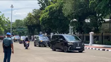 Kemudian iring-iringan mobil ini langsung menuju dalam Istana Merdeka untuk melaksanakan pisah sambut dengan Prabowo-Gibran.