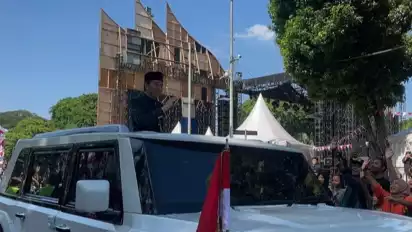 Kemudian sambil menoleh ke kanan dan kekiri, Jokowi menyapa warga satu persatu dengan melambaikan tangan sambil melemparkan senyuman.