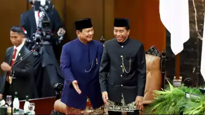 Presiden Prabowo tiba di Lanud Halim Perdanakusuma, Jakarta, dalam rangka agenda pelepasan Presiden Ke-7, Joko Widodo (Jokowi) pulang ke Solo, Jawa Tengah.