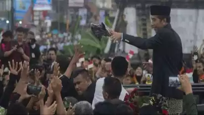 Terdengar riuh suara masyarakat menyebut nama Jokowi dan Iriana saat iring-iringan.