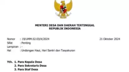 Sebelumnya beredar surat berkop Kementerian Desa dan Daerah Tertinggal Nomor: 19/UMM.02.03/X/2024.