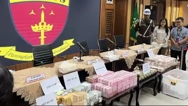Selain itu, juga turut disita mata uang hongkong HKD 483.320 dan mata uang rupiah Rp 5.725.075.000, logam mulia emas antam total 46,9 kilogram.