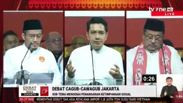 Jakarta, tvOnenews.com - Calon wakil gubernur Jakarta nomor urut 02 Kun Wardana gaungkan soal ekonomi digital dalam debat kedua Pilgub Jakarta di Beach City International Stadium, Jakarta Utara, Minggu (27/10/2024).