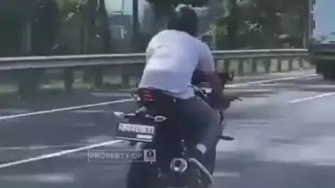 Perekam video terus mengikuti pengendara motor tersebut hingga masuk ke ruas tol Bandung.Â