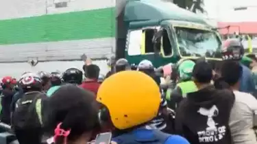 Saat itu pula, pengguna jalan yang geram dengan perilaku sopir truk kontainer itu lantas mengeroyoknya.