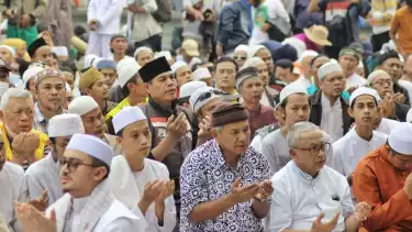 Berdasarkan pantauan tvOnenews, sekitar pukul 14.41 WIB terlihat ratusan massa kompak menggunakan pakaian dan peci berwarna putih.
