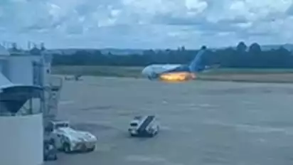 Namun, saat pesawat tersebut hendak lepas landas, tiba-tiba Trigana Air itu mengeluarkan api dari sayap kiri.