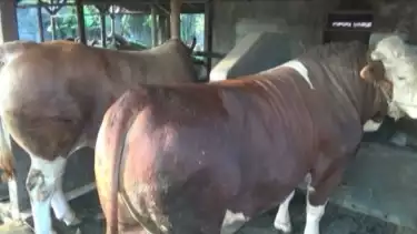 Sapi jenis simental berbulu cokelat dan putih ini terlihat gempal, bersih, sehat dan lincah. Bahkan, karena terlampau besar dan berat, pemilik sapi nyaris kewalahan saat berusaha mengeluarkan sapi ini dari kandangnya.