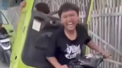 Aksi tak terpuji warga itu ramai di media sosial. Dalam video yang beredar, beberapa warga nampak membawa pintu truk dengan menggunakan sepeda motor.